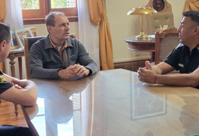 El intendente de Daniel Stadnik recibió en su despacho al nuevo jefe de la Comisaría de Carlos....
