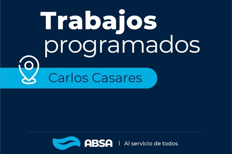 ABSA informa que el próximo jueves 13 se llevará adelante la reparación de un caño de impulsión en la calle Balcarce entre Alvarado y Rodríguez Peña, en Carlos Casares.