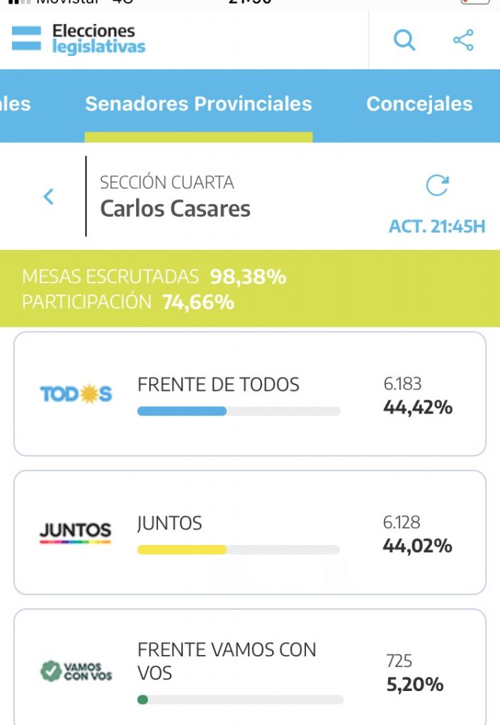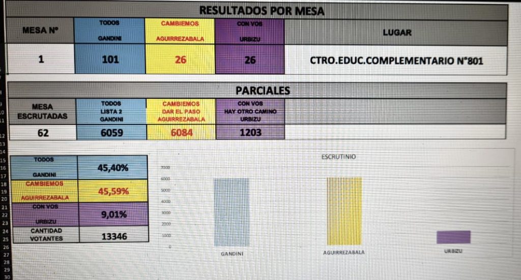 Por su parte el Intendente Torchio sacó 6183 votos con el 98, 38% de mesas escrutadas. Ingresá y conocé los resultados oficiales.-